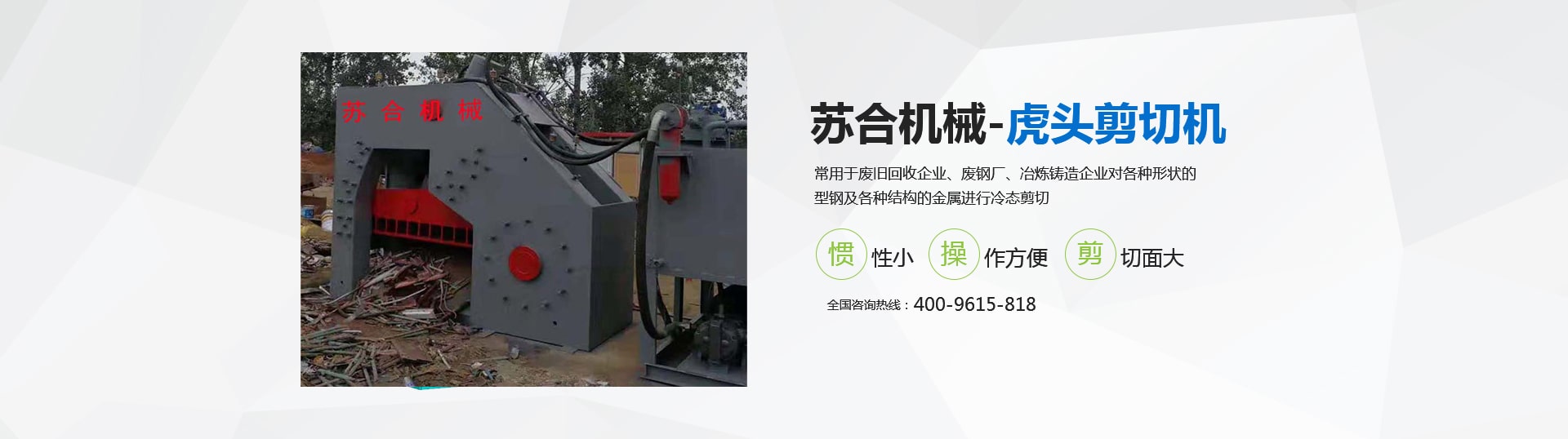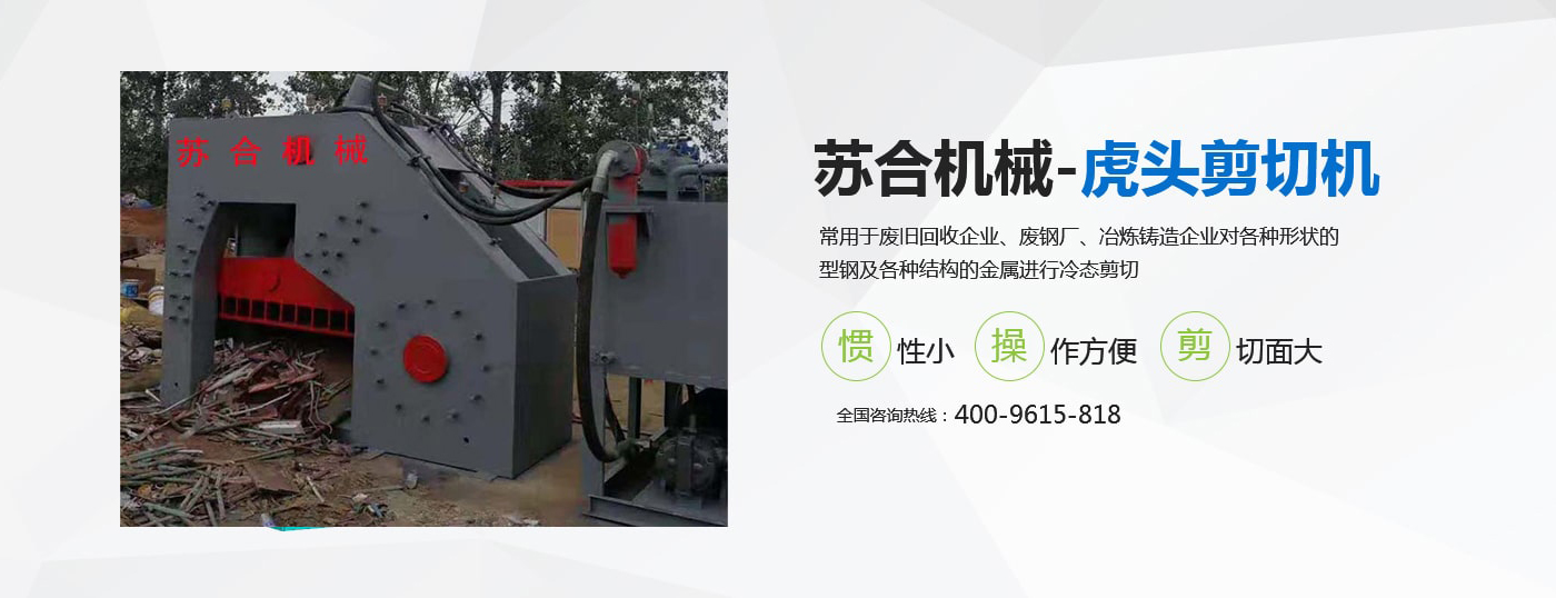 虎頭剪具有體積小、重量輕、慣性小、噪音低、動作平穩(wěn)、操作方便、靈活、剪切斷面大、剪刀口調(diào)整方便等優(yōu)點,操作使用安全。常用于廢舊回收企業(yè)、廢鋼廠、冶煉鑄造企業(yè)對各種形狀的型鋼及各種結構的金屬進行冷態(tài)剪切。剪切機的用途就是用來剪切定尺、切頭、切尾、切邊、切試樣及切除軋件的局部缺陷等。 滑縣蘇合機械制造有限公司性能穩(wěn)定,操作簡單。歡迎來電咨詢 <了解更多>